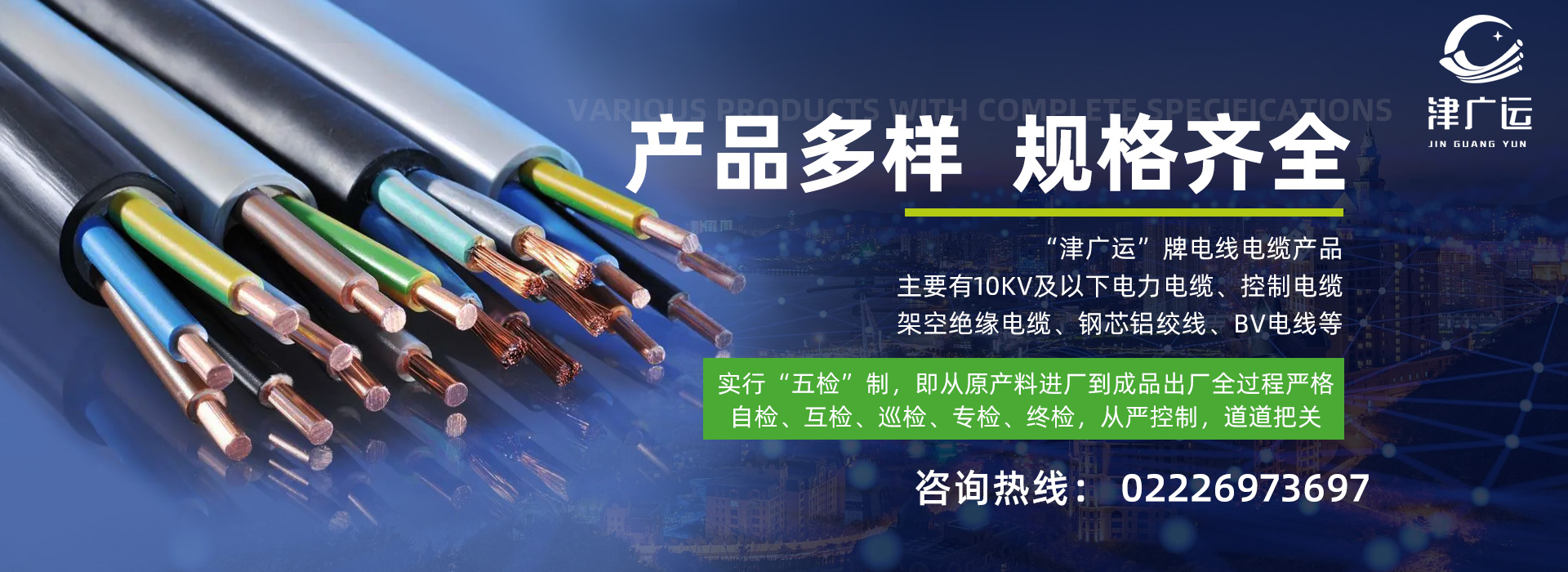 “津廣運”牌電線電纜產品,主要有10kv及以下電力電纜、控制電纜、架空絕緣電纜、鋼芯鋁絞線、bv電線等。我們可以根據用戶需求,嚴…